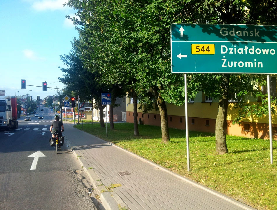 Po pokonaniu torów droga znowu jest miło asfaltowa. I po niedługim czasie wjeżdżamy do Mławy. Nie zatrzymujemy się i kierujemy drogą 544 w stronę Działdowa.