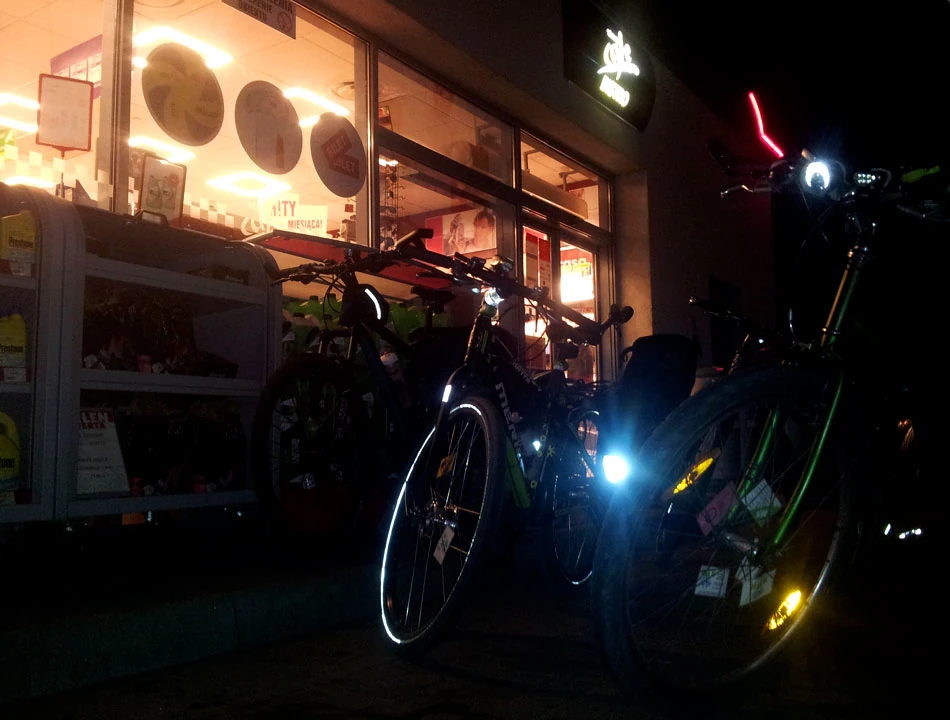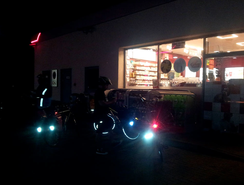 Ruszamy dalej drogą 542 w stronę Uzdowa. Potem odbijamy w stronę Turzy Wielkiej, by po jakimś czasie wskoczyć na drogę 538 prowadzącą w stronę Żabin. Okolice są coraz piękniejsze, ale robi się całkiem ciemno i niewiele widać. Znowu odbijamy w drogę bez numeru prowadzącą ku Jezioru Zwiniarz. Potem przez Prątnicę i Fijewo dojeżdżamy do Lubawy. Jest około północy, mniej więcej 200. kilometr podróży. Kolejny raz przystanią staje się stacja benzynowa. W zasadzie to powinniśmy chyba podziękować Orlenowi, bo to on najczęściej poi nas i żywi podczas tej wycieczki. Okazuje się, że na stacji można napić się w miarę przyzwoitej kawy, zjeść podgrzewaną bułę (nawet w wersji wegetariańskiej), uzupełnić płyny izotoniczne.