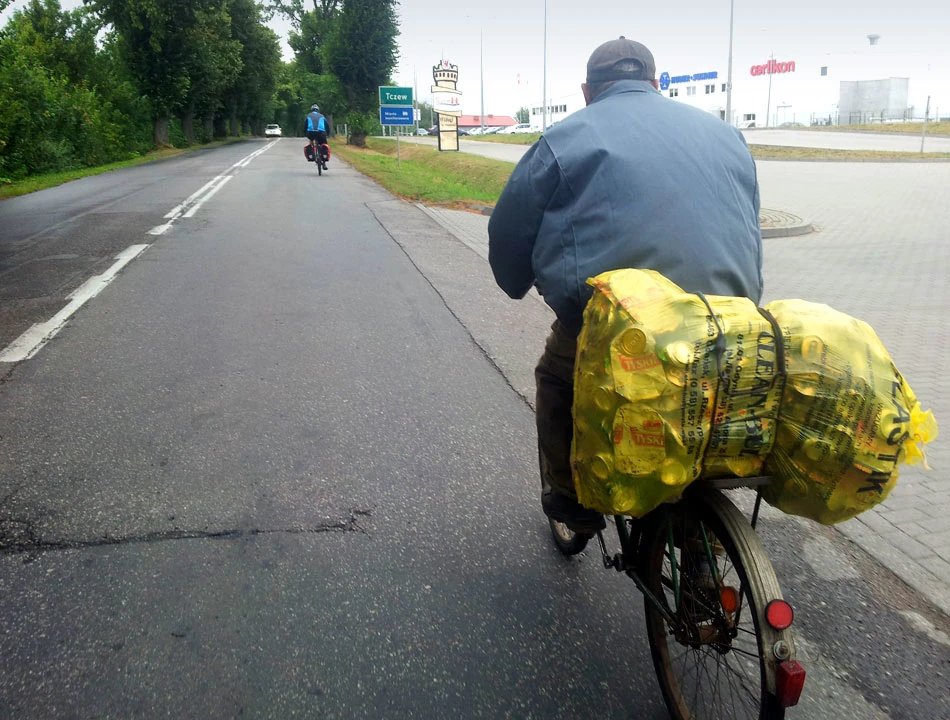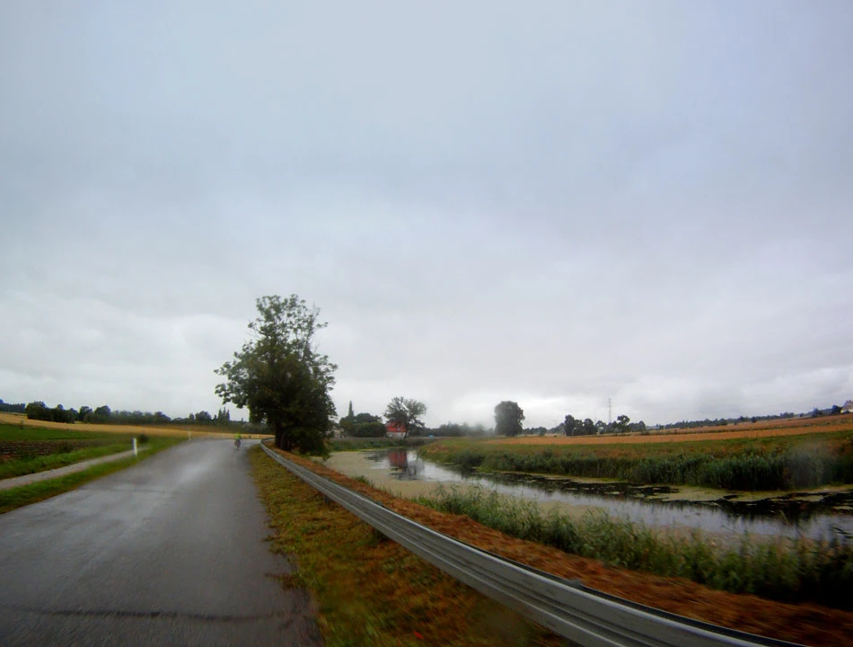 Jedziemy drogą 522 przez Mikołajki Pomorskie, Górki; odbijamy w stronę Klecewa, potem przez Stary Targ i Czerwony Dwór dojeżdżamy do granic Malborka. Pada coraz mocniej, Piotrkowi i Marcinowi jazda nie sprawia już w zasadzie żadnej przyjemności. Jest buro i mało optymistycznie.