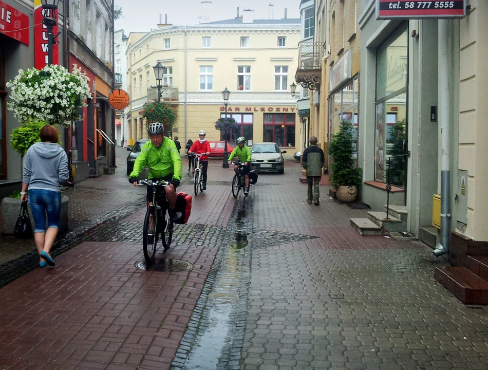 Po kilku godzinach snu wybieramy się do Tczewa na obiad. Dołącza do nas Marta, która przyjechała pociągiem z Warszawy. Po obiedzie trochę kręcimy się po mieście i we czwórkę jedziemy do Gdańska. Pada stale, wszystko wokół zachlapane.