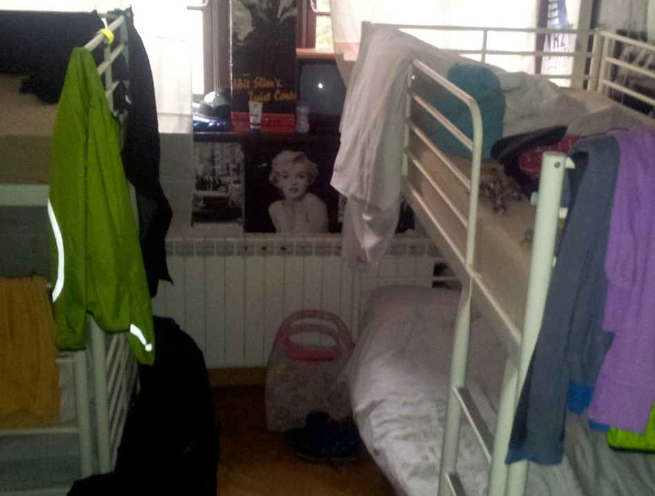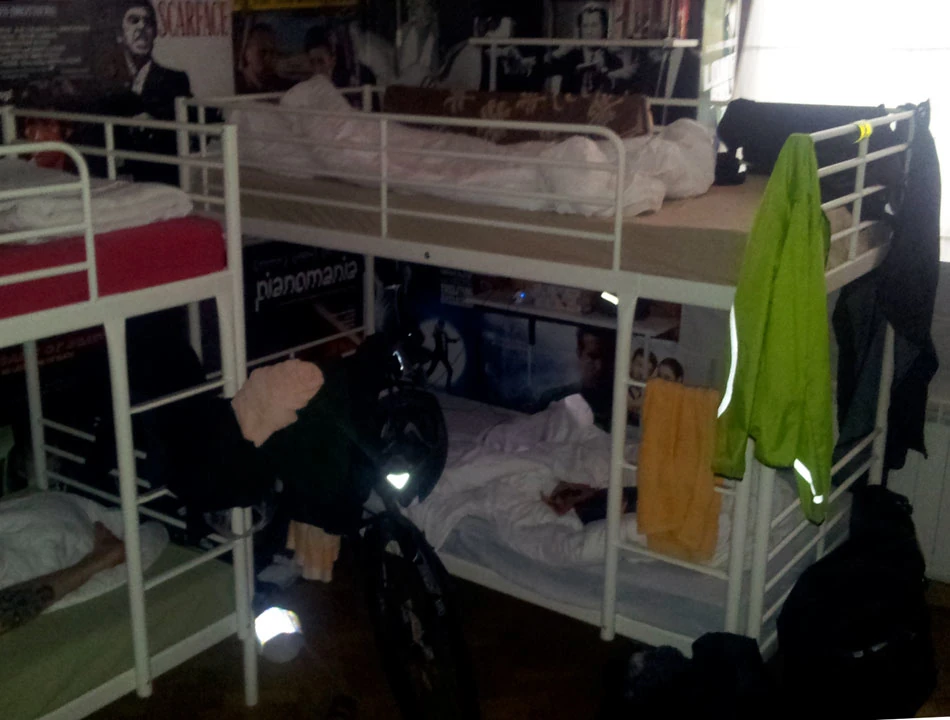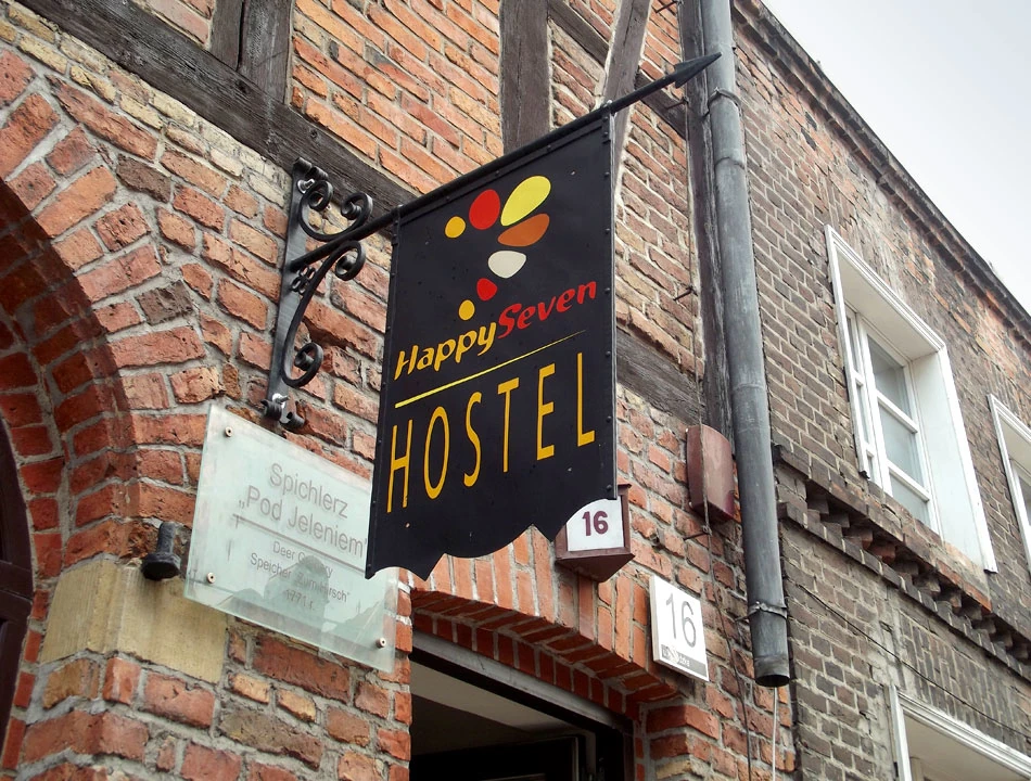 Hostel Happy Seven wybraliśmy ze względu na położenie blisko centrum i ofertę przechowywania rowerów. Najpierw miła pani w recepcji nie potrafiła odnaleźć rezerwacji, gdy to się udało, okazało się, że rowery można przechować upchnięte na półpiętrze. Ponieważ nie byliśmy jedynymi rowerzystami, rower Marka nocował z nami w pokoju. Jak na warunki hostelowe było całkiem przyzwoicie, choć drogo. W cenie pościel, ręcznik, wi-fi, podłe śniadanie. W każdym pokoju zamykane na klucz szafki dla każdego mieszkańca. My nocowaliśmy z miłym obcokrajowcem, który wybył na noc, a po balandze położył się spać o szóstej rano. Był trochę wkurzony, gdy zaczęliśmy się zbierać do wstawania, gdy on spał zaledwie trzy godziny. Hostel położony jest na małej uliczce, w urokliwej kamieniczce.
