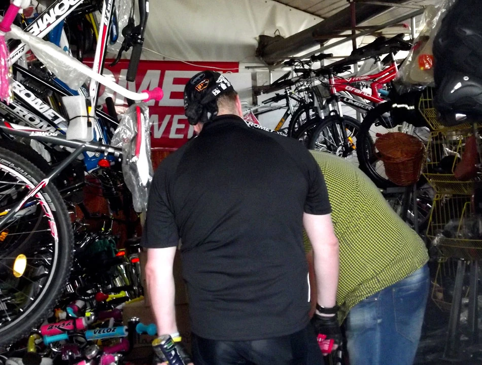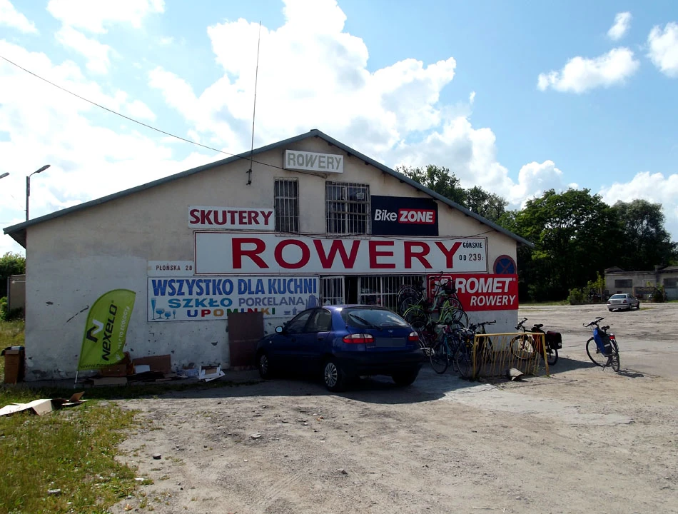 Kierujemy się w stronę Gołotczyzny i dalej Ciechanowa; trudno pomylić drogę, bo z Gołotczyzny wyjeżdżamy na ulicę o nazwie Ciechanowska. Kowlakowi jedzie się coraz trudniej; coś dzieje się z jego tylnym kołem. Po krótkich oględzinach, diagnozujemy, że to coś z piastą. W pewnej chwili nawet z górki rower nie chce się toczyć. Na szczęście Ciechanów już blisko. Zaczynamy poszukiwania serwisu rowerowego. Po konsultacji z napotkanym rowerzystą trafiamy na Płońską. Jest tu sklep i serwis rowerowy, ale drugą część hangaru, w którym jest sklep, zajmują artykuły przemysłowe. Pan z serwisu rozkręca koło i wyrokuje, że wyrobiły się konusy w piaście. Jednak konusów brak. Są w innym sklepie. Marek wsiada na rower i udaje się na poszukiwania. Po niedługim czasie wraca z konusami. Naprawa koła, wraz z kosztem nabycia konusów, nie przekracza 20 złotych. Gdyby tyle kosztowały naprawy w Warszawie i tak szybko by się odbywały, byłoby cudownie.