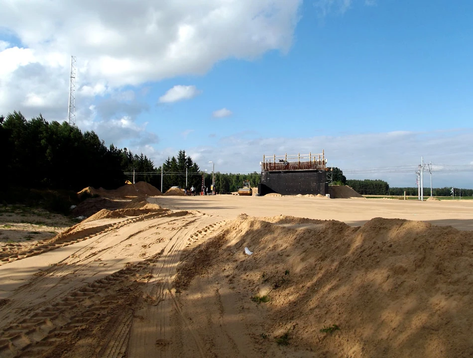 Z Ciechanowa ruszamy w stronę Mławy, drogą 615. Pod Konopkami trafiamy na budowę wiaduktu nad torami kolejowymi i co za tym idzie, na propozycję kilkukilometrowego objazdu. Postanawiamy pokonać teren budowy „wpław” i przez chwilę czujemy się, jakbyśmy pokonywali pustynię.