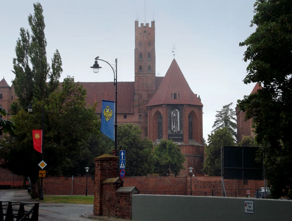 Wjazd do Malborka jest jakiś taki nijaki. Kocie łby łatane asfaltem, w tle blokasy i nic nie zapowiada obecności sławnego zamku. Dojeżdżamy w okolice warowni i głównie z obowiązku fotografujemy dumę krzyżacką.