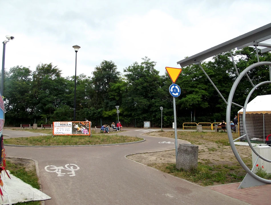 Na wysokości Brzeźna dojeżdżamy nad samo morze. Tu też widać dbałość i infrastrukturę. Zadziwia nas rowerowe rondo; nigdy takiego nie widzieliśmy na żywo. Są zadaszone stojaki rowerowe. Całe mnóstwo rowerów do wypożyczenia. Jednoosobowe, dwu, cztero. Można też wypożyczyć rower z przyczepką.