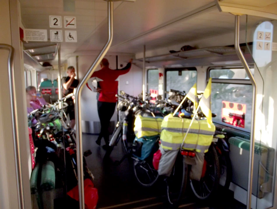 Do Warszawy wracamy pociągiem Kolei Mazowieckich. Wypasiony piętrowy pociąg, z dwoma wagonami do przewozu rowerów, z mobilnym i stacjonarnym barem. I w dodatku tanio. To wszystko powoduje, że chętnych do podróżowania jest dużo. W pociągu poznajemy pana Krzysztofa z żoną. Tak na oko sześćdziesięcioletni podróżują z rowerami po Polsce. Tym razem jadą pociągiem do Warszawy, a stamtąd do Kazimierza Dolnego. Mają ze sobą namiot, sprzęt biwakowy, są przygotowani na wszelkie okazje. Po kilku godzinach — około północy — jesteśmy w Warszawie. Teraz dociera do nas, że pierwszy raz w życiu przejechaliśmy ponad 300 kilometrów na raz.