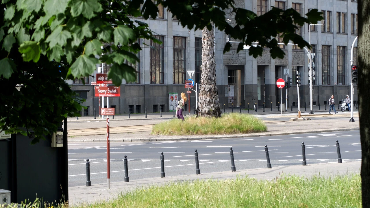 Centrum miasta wyludnione. Niemniej palma przyciąga – jakiś młodzieniec gwałtownie i głośno wyraża siebie.