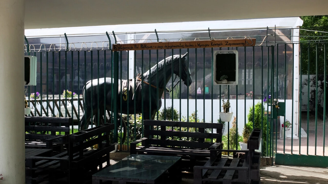 Przy wejściu na tor, zdobienia restauracji nie zostawiają złudzeń, gdzie jesteśmy, a może kto jest głównym klientem. Choć nazwa jest myląca: Podkowa. Jadłodajnia kowali?