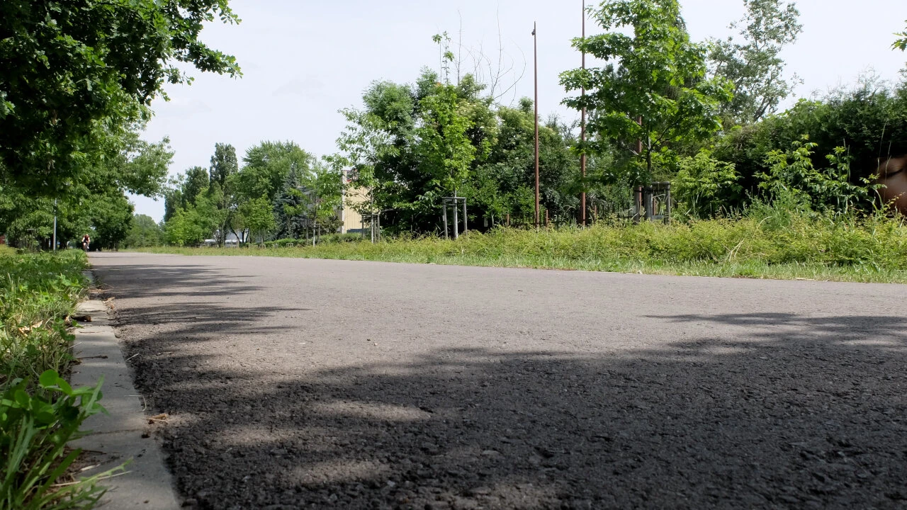 My popylamy wzdłuż płotu ulicą Wirażową. Jak widzimy, nie tylko my lubimy pokręcić w święto, jednak mało spotykamy dzisiaj wielbicieli rowerstwa.