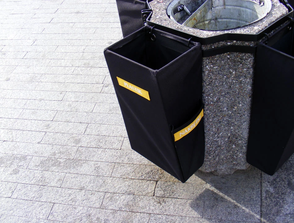 Ciekawe są też kosze do segregacji śmieci, ze specjalną kieszonką na nakrętki.