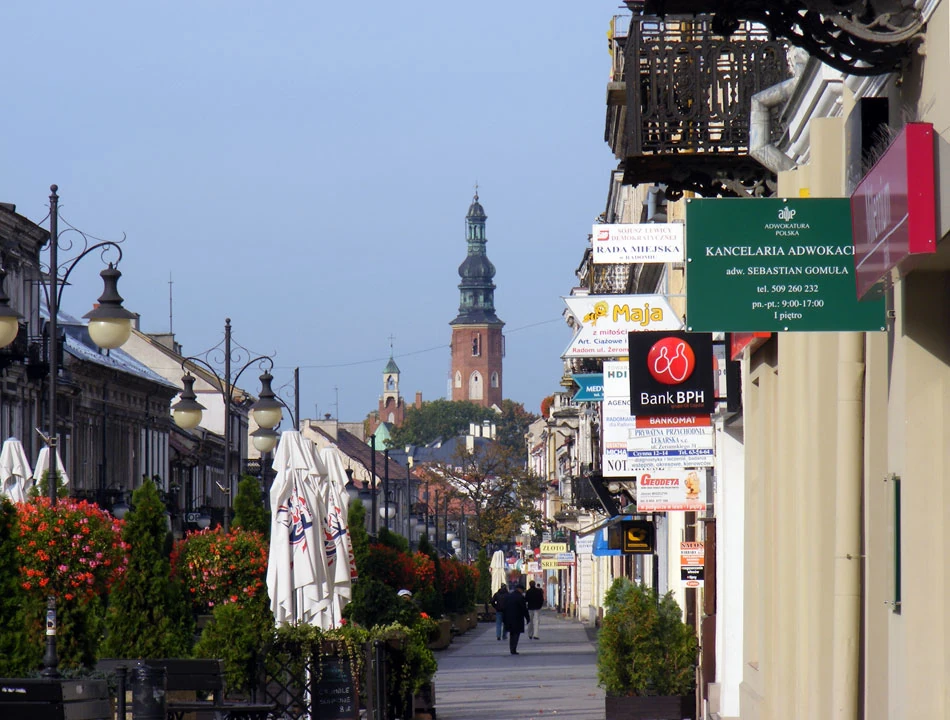 Jak opowiada nam Artur, Radom rozwijał się od strony ulicy Żeromskiego – dzisiaj to dość zadbany deptak. Spod Kościoła ruszamy Piłsudskiego i Kościuszki. W Śródmieściu dominuje dziewiętnastowieczna architektura, bardzo ładnie się prezentująca. Takiego wyglądu Radomia nie można się nawet domyślić, przejeżdżając przez miasto drogą krajową numer 7.