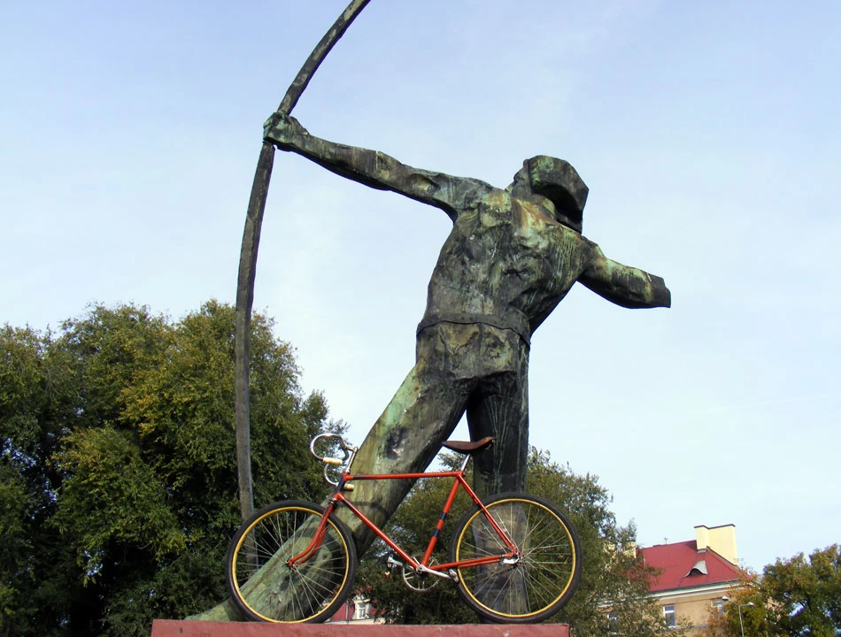 Nadjeżdża ktoś na niecodziennym rowerze; zgadujemy, że to nasz przewodnik. I rzeczywiście to Artur Sprężysty. Zsiada z cudownej maszyny. To przedwojennej produkcji rower Łucznik z Fabryki Broni w Radomiu. Zakłady w Radomiu produkowały do 1939 roku kilkanaście modeli rowerów: młodzieżowe, damskie, turystyczne, wyścigowe, sportowe a nawet górskie. Była też produkowana wersja wojskowa. Nie wiadomo z którego roku pochodzi rower Artura, ale maszyna ma co najmniej 76 lat. Jak mówi Artur, największe problemy są z dobraniem opon. Mimo, że jeździ na 26 calowych kołach, to dzisiejsze opony nie chcą pasować. W rowerze jest uchwyt na lampę karbidową i nawet jeden ze Sprężystych ma taką, ale nie chce jej użyć z obawy przed małą eksplozją.