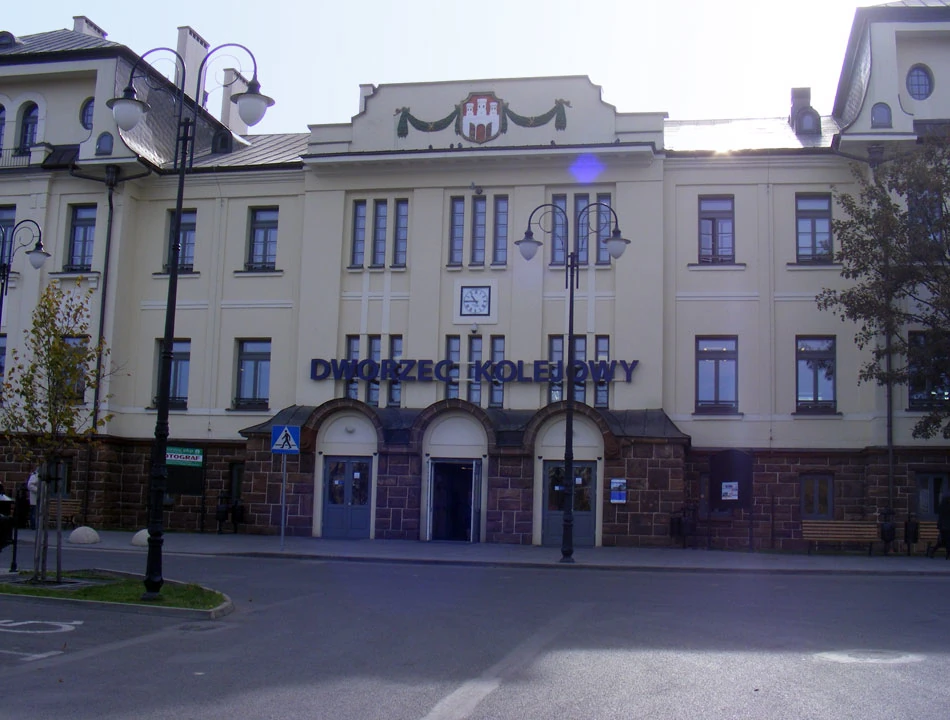 Dojeżdżamy do dworca kolejowego, którego nie dane nam było odwiedzić pociągiem. Budynek jest wyremontowany i całkiem dobrze wygląda.
