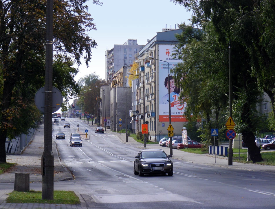 Znowu jedziemy Żeromskiego, by zobaczyć główną ulicę miasta z drugiej strony niż o poranku. Ulica jest reprezentacyjna, a jednocześnie pełna zakamarków.
