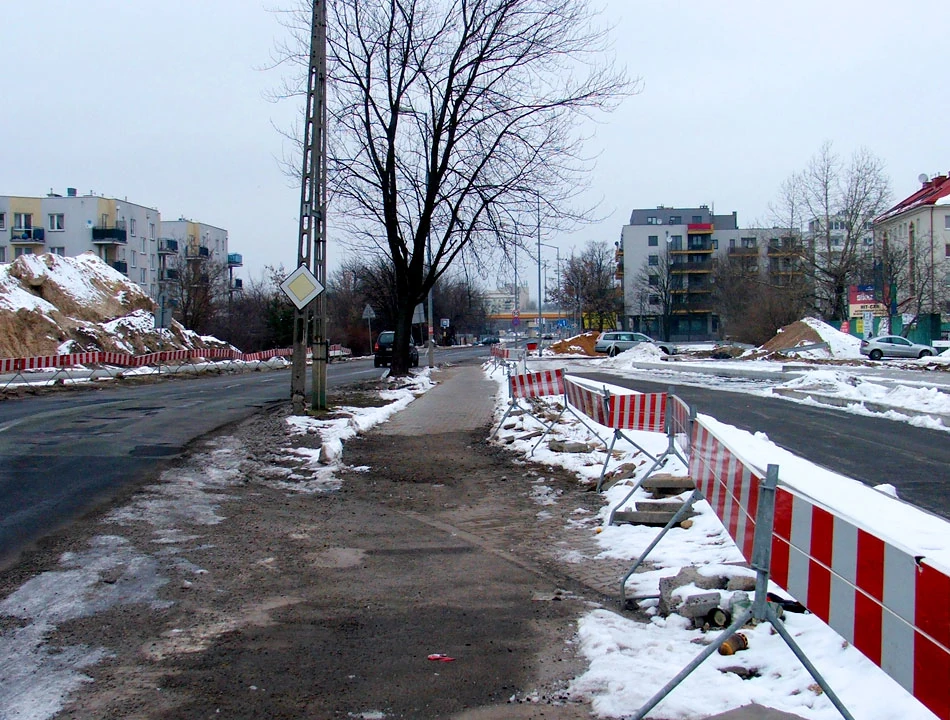 Skręcamy w Prymasa Tysiąclecia. Jedziemy ulicą; co prawda wzdłuż ulicy jest droga dla rowerów, ale — zgodnie z obietnicami Zarządu Oczyszczania Miasta — kompletnie nieodśnieżona. Skręcamy w Górczewską i dojeżdżamy do Lazurowej.