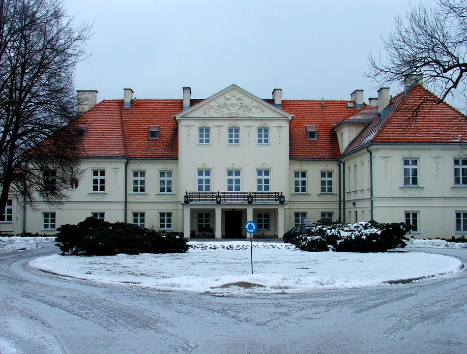 Stołeczną, która po jakimś czasie staje się Warszawską, prujemy w stronę Leszna. Po drodze zatrzymuje nas kolejny pałac, tym razem w Zaborówku. I ten klasycystyczny budynek stał się po II wojnie częścią PGRu. Zdaje się, że obecnie można zorganizować tam wesele.