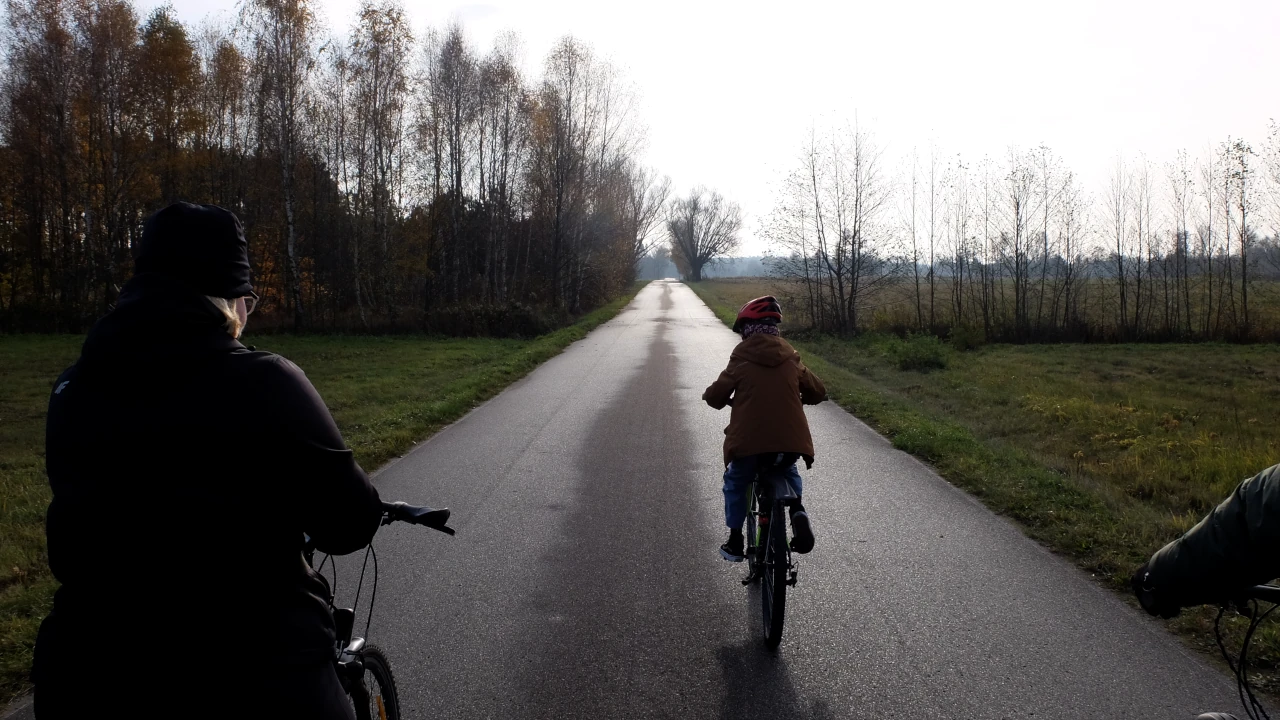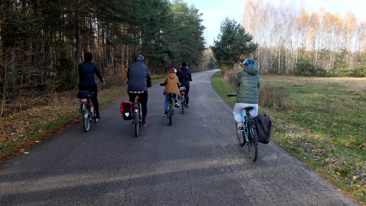 Mijamy Kury i kierujemy się w stronę Zastonowizny. A potem, środkiem lasu, jedziemy Aleją Anny Walentynowicz. Przy drodze jest głaz upamiętniający pobyt patronki ulicy w pobliskiej wsi podczas II Wojny Światowej.