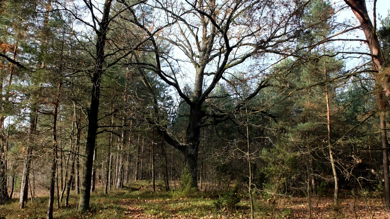 Ola prowadzi nas do lasu, gdzieś tu był kiedyś dwór; teraz nie ma po nim śladu.