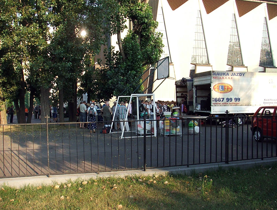 Obok na przykościelnym placu trwa właśnie pakowanie bambetli do samochodów.