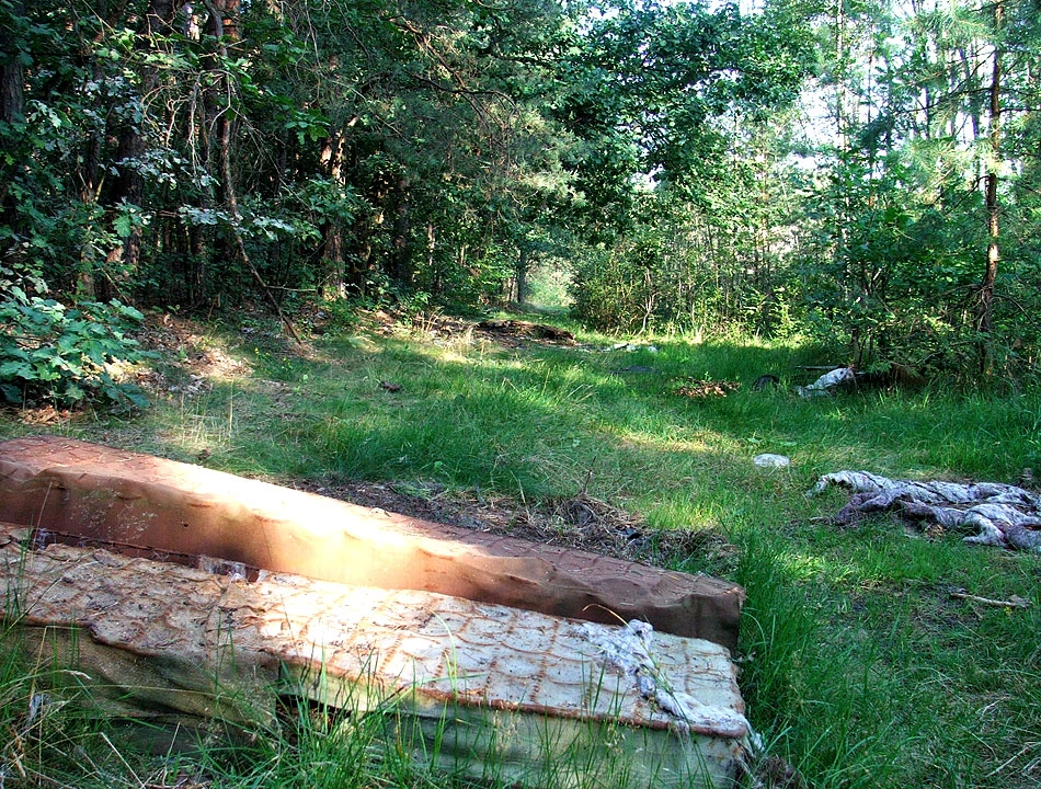 Izbicką jedziemy do końca ulicy i w las, w stronę Wiązownej. Widoki są sielskie, jednak czasem natrafiamy na objawy schamienia ludności w postaci dzikich wysypisk śmieci.