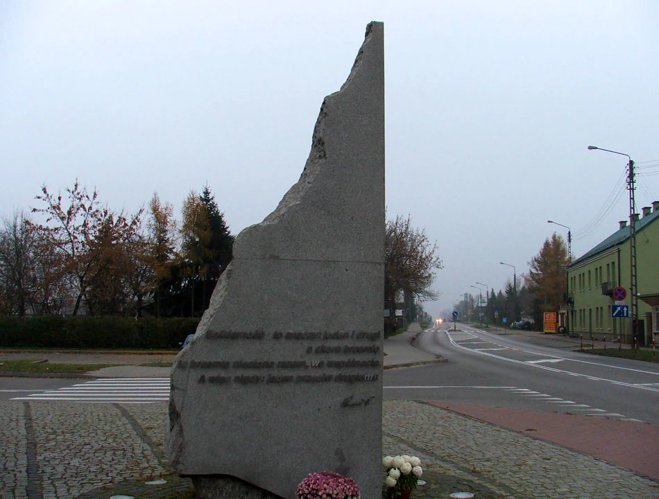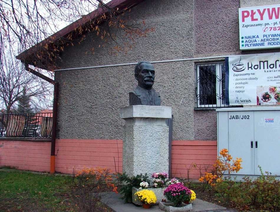 Mijamy most i kierujemy się w stronę Jabłonny. Przed skrzyżowaniem Modlińskiej z Zegrzyńską odbijamy w Dębową, by oddalić się choć trochę od ruchliwej arterii. Potem Marmurową jedziemy do Szkolnej i robi się patriotycznie. Najpierw natrafiamy na obelisk z cytatem z Jana Pawła II, a potem widzimy popiersie Wincentego Witosa.