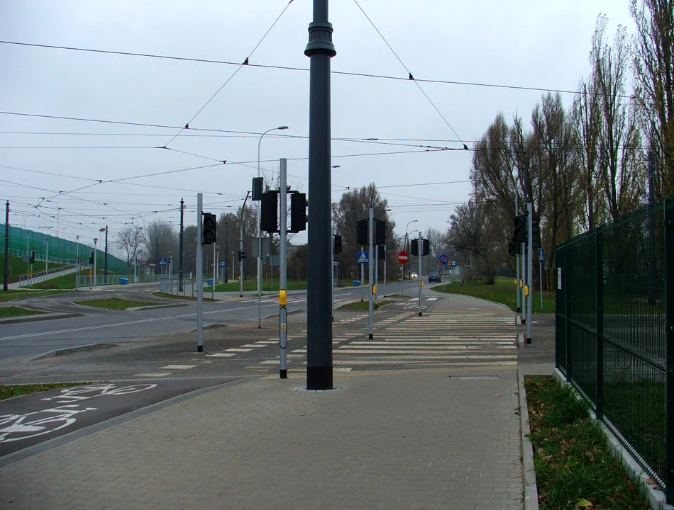 Wracamy do Kampinoskiej i Estrady dojeżdżamy do Dziekanowskiej. Potem wzdłuż muru Cmentarza Północnego osiągamy Wólczyńską. Tu ruch samochodowy przyjemnie maleje, bo Wólczyńska ze względu na roboty drogowe jest chwilowo ślepą ulicą. Wólczyńską jedziemy do Reymonta i potem Broniewskiego. Tu mamy okazję jechać sławną już drogą dla rowerów wyłożoną płytami chodnikowymi.