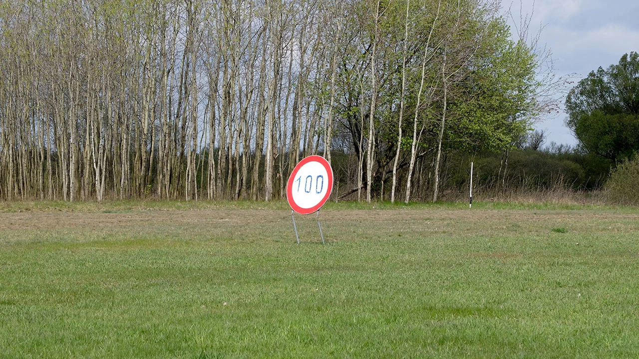 Aleja słupów elektrycznych czyni nas małymi wobec zdobyczy techniki. I rozczula nas dbałość o bezpieczeństwo ruchu polowego/drogowego – jakie bryki tu jeżdżą, jaką moc mają, skoro trzeba ograniczyć prędkość?