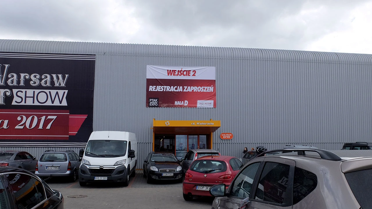 Pełno tu samochodów, bo odbywają się tu też inne imprezy. Tak po prawdzie, to trudno się zorientować jak dostać się na interesujące nas wydarzenie, a obsługa nie bardzo jest zorientowana. Najwięcej ludzi jedzie wystawę budowlaną i coś o nazwie Targi Fitness i Sportów Siłowych Go Active Show.