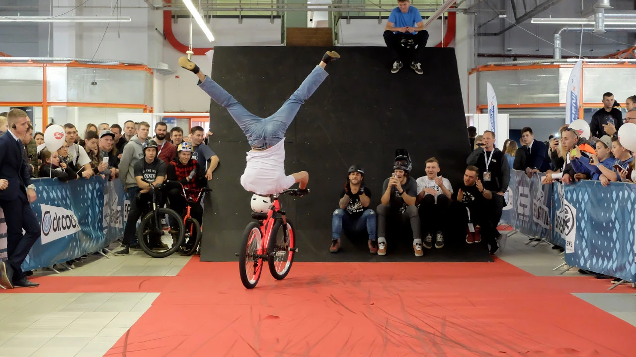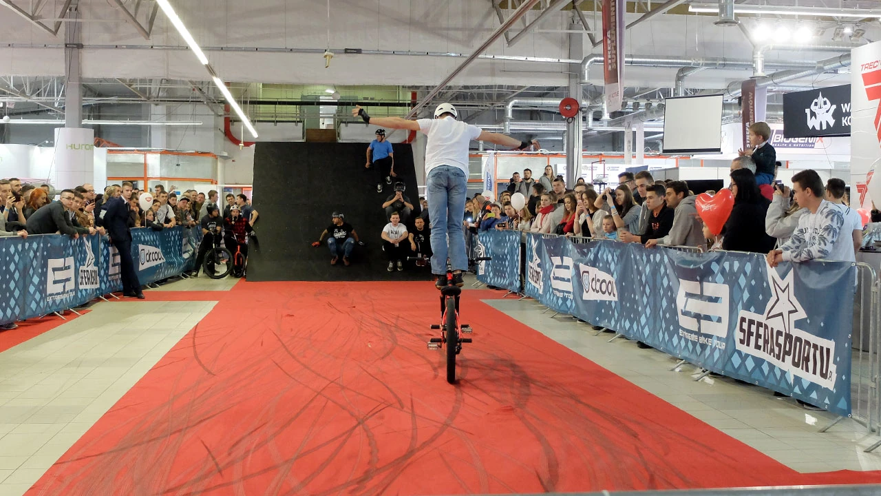 Szczęśliwie zaczyna się pokaz bmx-ów. Chłopaki na rampach fruwają na wszystkie strony, wysoko pod sam dach hali. Jednak trafiliśmy w miejsce, które ma jakiś związek z rowerami.