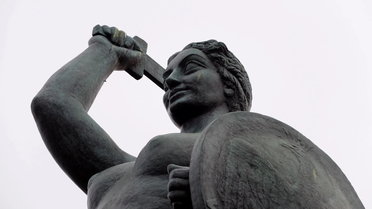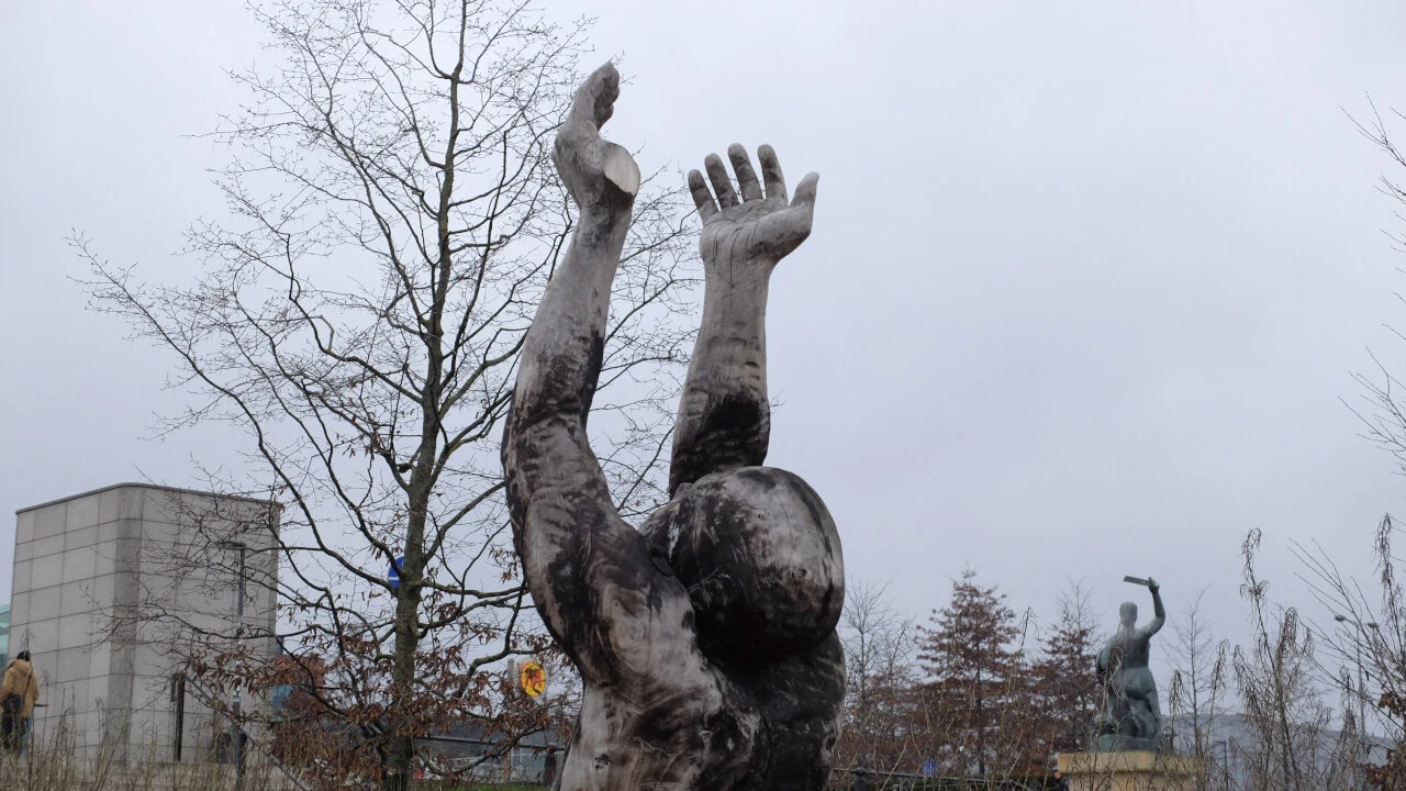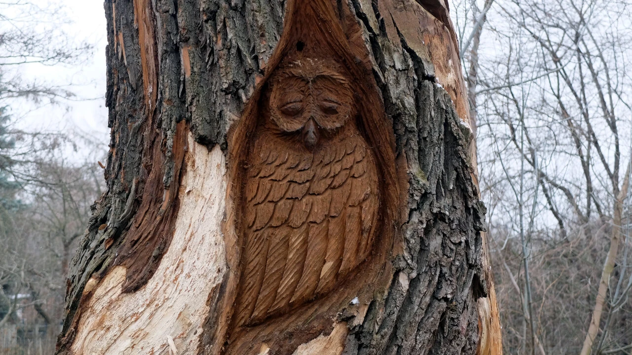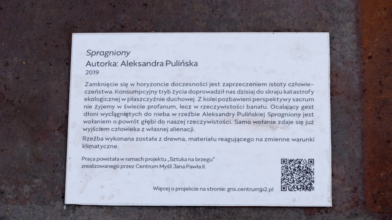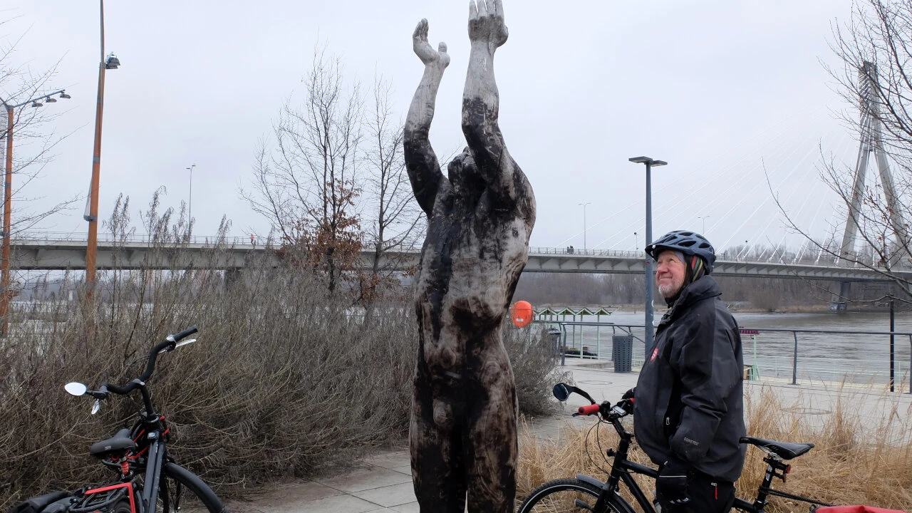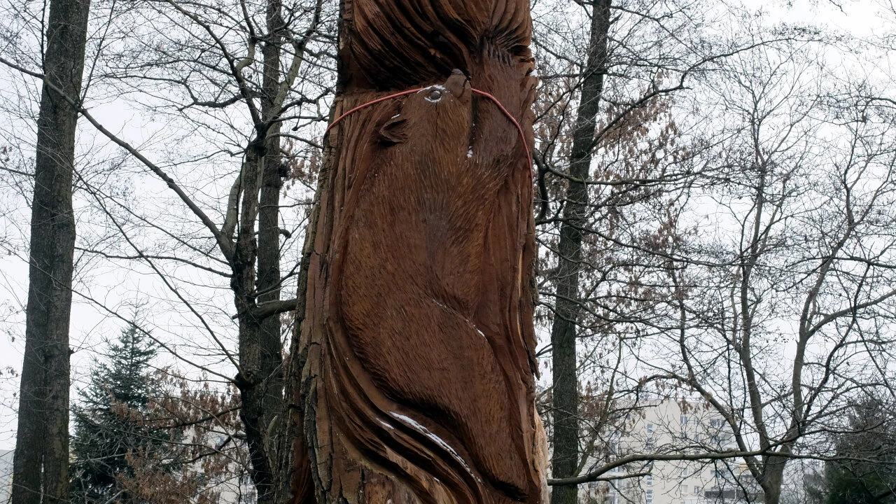 Jedziemy pod Syrenkę, by się rozjechać w stronę domów. A tu wali nas po oczach dzieło sztuki. Drewniana rzeźba reaguje na warunki atmosferyczne i ludzkie.