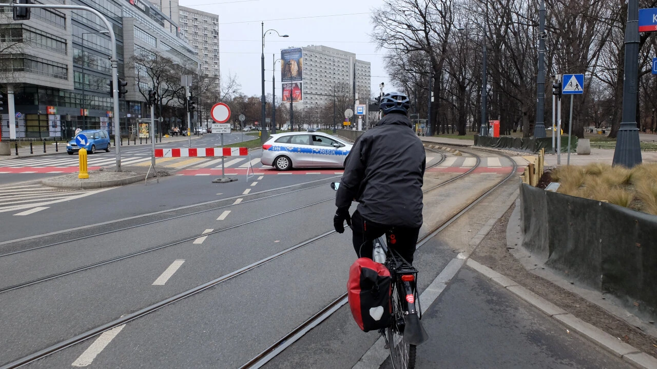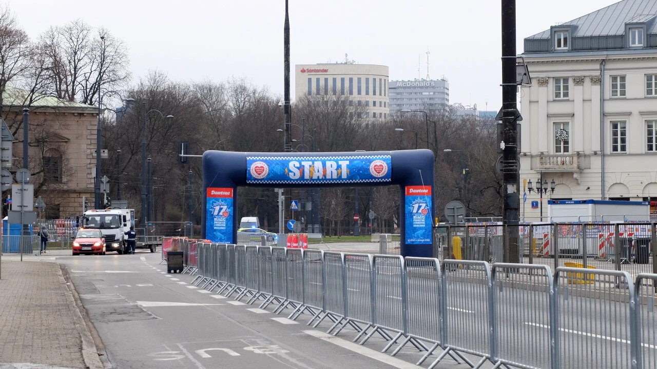Po drodze mijamy zapory i radiowozy. Bankowy jest zamknięty ze względu na finał Wielkiej Orkiestry.