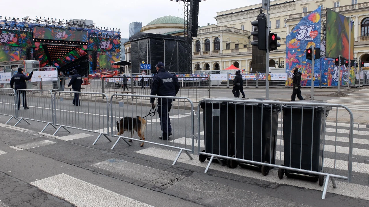 Trafiamy na moment sprawdzania placu przez ekipę policyjną. Sprawdzane są kosze na śmieci, przystanki. Jak widać, obawy związane z bezpieczeństwem są mocno żywe. Zabójstwo prezydenta Adamowicza była przecież tak niedawno.