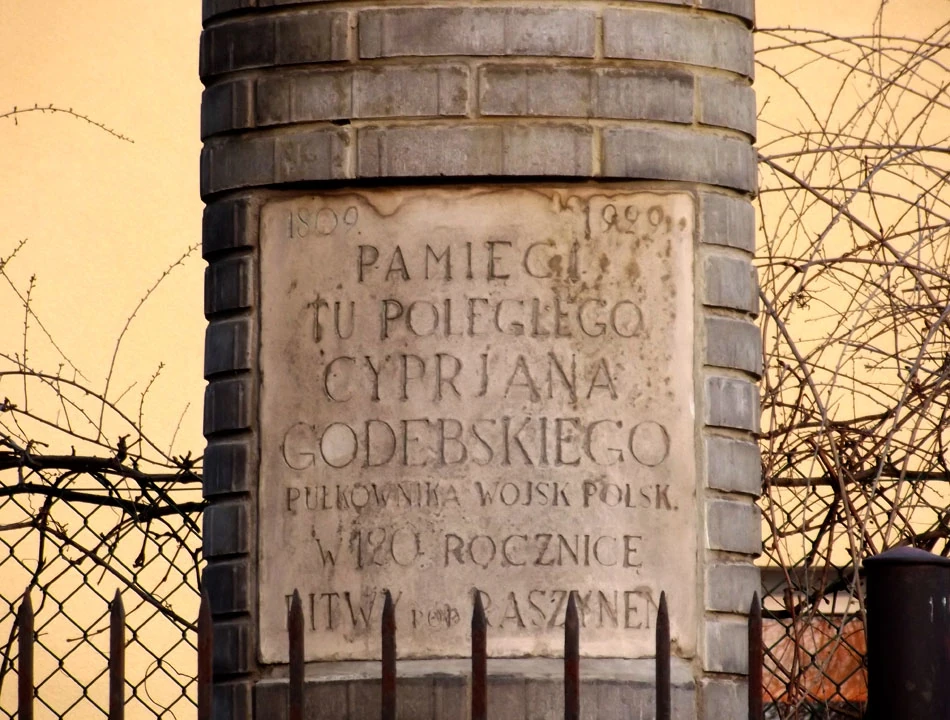 Po minięciu obwodnicy jesteśmy już w Raszynie. Słowikowskiego dojeżdżamy do Godebskiego. Patron ulicy i bohater Bitwy Warszawskiej został uhonorowany pomnikiem.