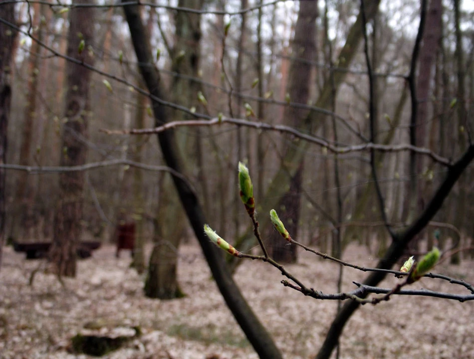 Za Auchan w Piasecznie skręcamy w Geodetów, a potem w Wilanowską i przez Kierszek wjeżdżamy do Lasu Kabackiego. Tłum ludzi biega, chodzi, jeździ po lesie. Rekreacja pełną gębą. Ale i przyroda już się budzi i nieśmiało sygnalizuje, jak tu będzie pięknie w maju.
