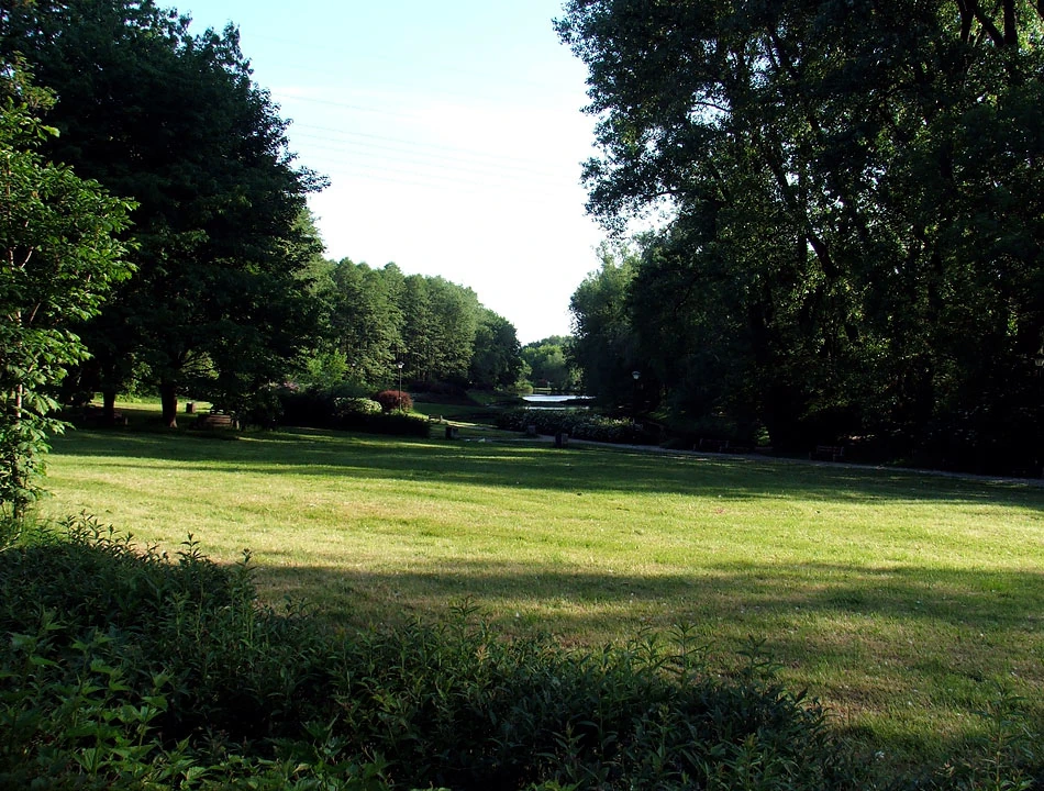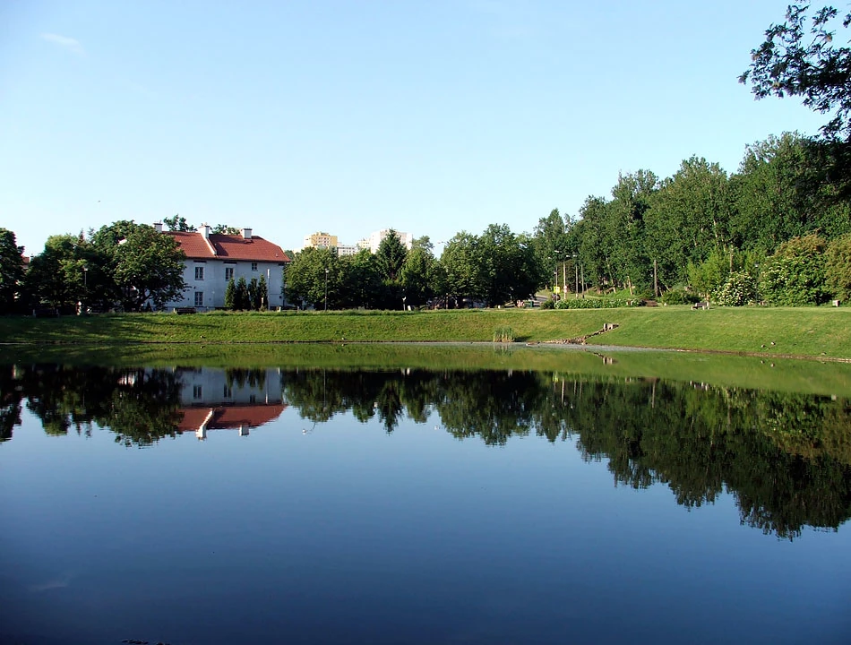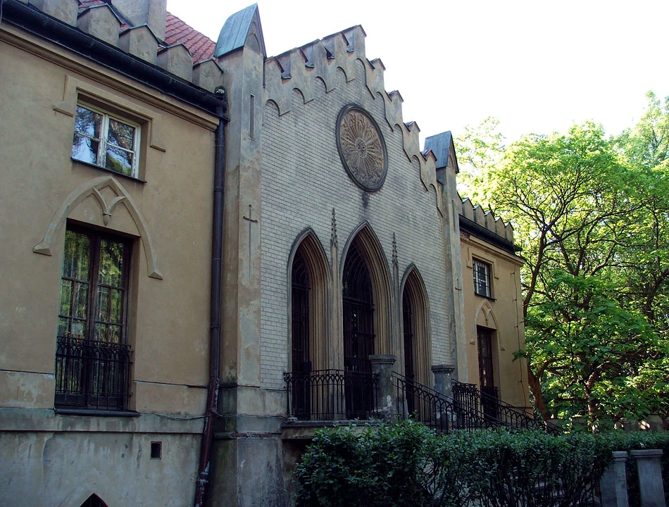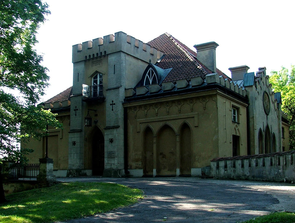 W głębi parku jeszcze broni się przed zachłannością deweloperską Pałac Szustra, który nam kojarzy się z angielską posiadłością.