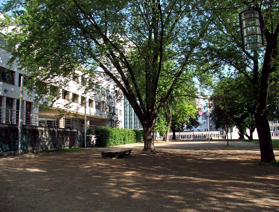 Dojeżdżamy do Okólnika i Akademii Muzycznej. Z okien Akademii słychać dźwięki muzyki; mimo różnych instrumentów i zupełnie różnych utworów, czasem melodia układa się w miłą dla ucha całość. Do słuchania zachęca sensownie zaprojektowany skwer.