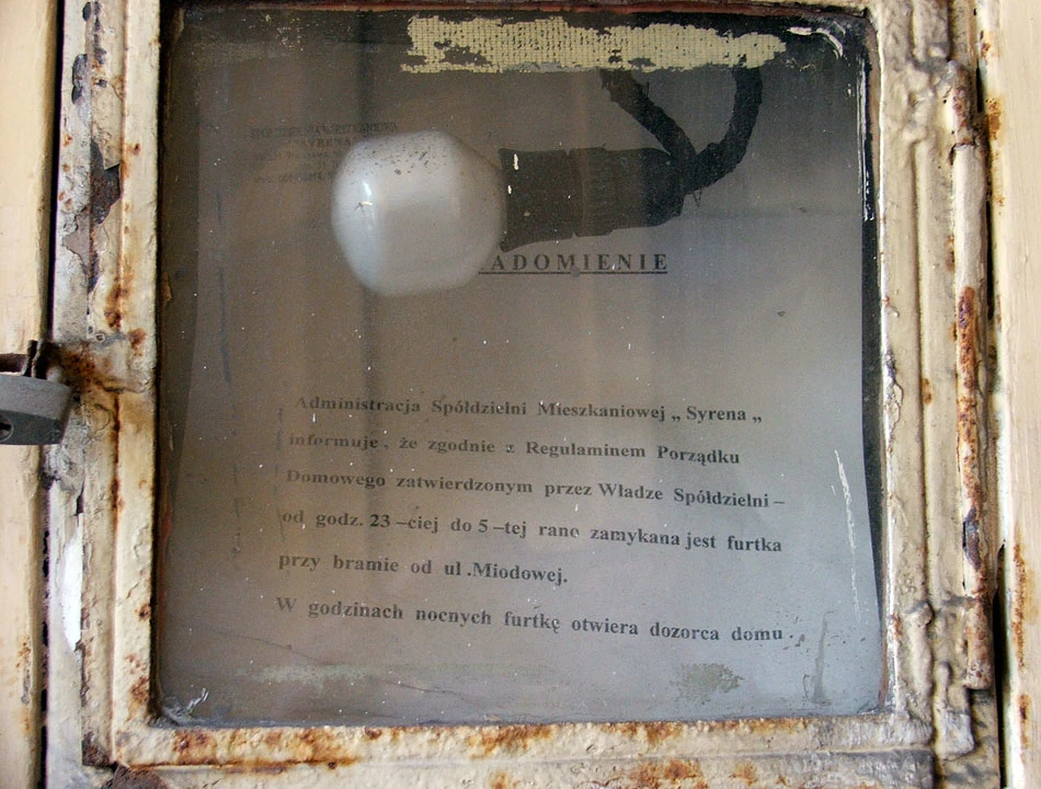 W bramie napotykamy ciekawe ogłoszenie spółdzielni mieszkaniowej; ciekawe czy nadal obowiązujące?