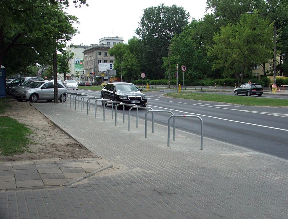 Gwiaździstą dojeżdżamy do Dewajtis i w górę na teren Uniwersytetu Kardynała Wyszyńskiego. Potem do Marymonckiej i na wysokości szpitala Bielańskiego podziwiamy rząd całkiem nowych stojaków rowerowych.