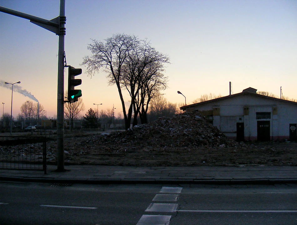 Potem Folwarczną docieramy do starego odcinka Radzymińskiej, przecinamy tory kolejowe przy Naczelnikowskiej i wjeżdżamy na szeroką Radzymińską. A potem mijamy puste pole, które kiedyś było Zakładami Przemysłu Tłuszczowego imienia 15 grudnia. Tu produkowano popularne kiedyś Masło Roślinne, czy margarynę Palma. Zakłady powstały w 1951. Ale czego dotyczyła nazwa imienia 15 grudnia? Sprawdzamy w Wikipedii — 15 grudnia: 1907 w Olsztynie wyjechał na trasę pierwszy tramwaj, 1931 ukazało się pierwsze wydanie miesięcznika Kuźnia Młodych, 1936 uruchomiono pierwszą w kraju linię kolei elektrycznej na trasie Warszawa-Otwock i Warszawa-Pruszków, 1937 powstał klub sportowy Calisia Kalisz, 1948 z połączenia PPS i PPR powstała PZPR, 1951 w Warszawie odbył się pierwszy publiczny pokaz telewizyjny. A teraz straszy tylko samotny komin, na którym kiedyś było napisane ZPT im. 15 grudnia.