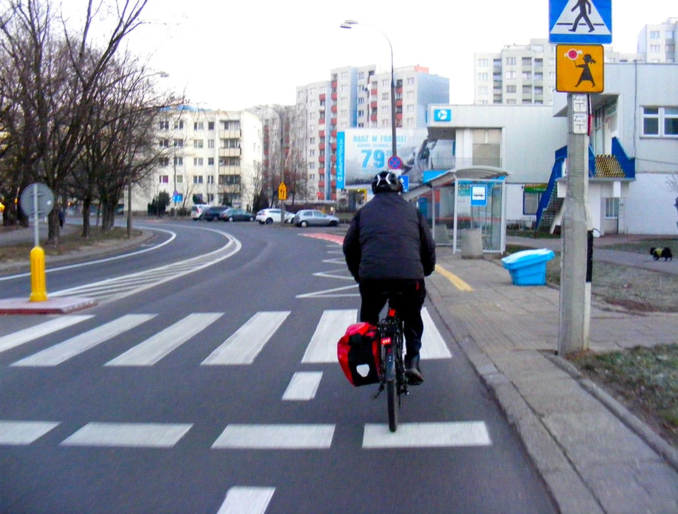 Jedziemy obejrzeć drogi wymienione w podsumowaniu inwestycji rowerowych w Warszawie w 2015 roku. Jest tych lokalizacji trochę. Odrzucamy Ursus i Ursynów, bo jednak ten rozrzut trochę nas zniechęcił. Odrzuciliśmy też Bulwary Wiślane, zostawiając je na bardziej sprzyjające warunki pogodowe, a drogę wzdłuż trasy AK też już wizytowaliśmy (Zalecana Zasada Ruchu). Pogoda nie zachęca do jazdy, jest kilkanaście stopni poniżej zera i wieje — zima jest i tyle.