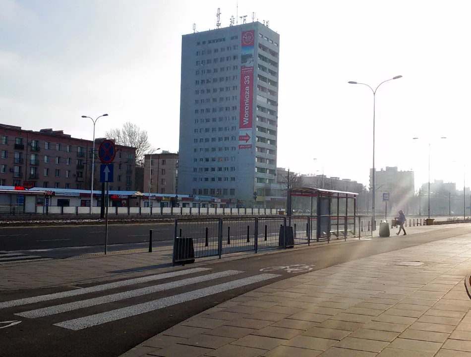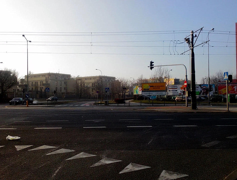 Trochę zdziwieni, a może coś stało się z naszymi oczami na mrozie, przez teren stacji benzynowej wskakujemy na Prymasa Tysiąclecia. Co prawda przez Armatnią chcieliśmy przedostać się na tyły Warszawy Zachodniej, ale zniechęcił nas kręcący się w okolicy pies wielkości cielaka.