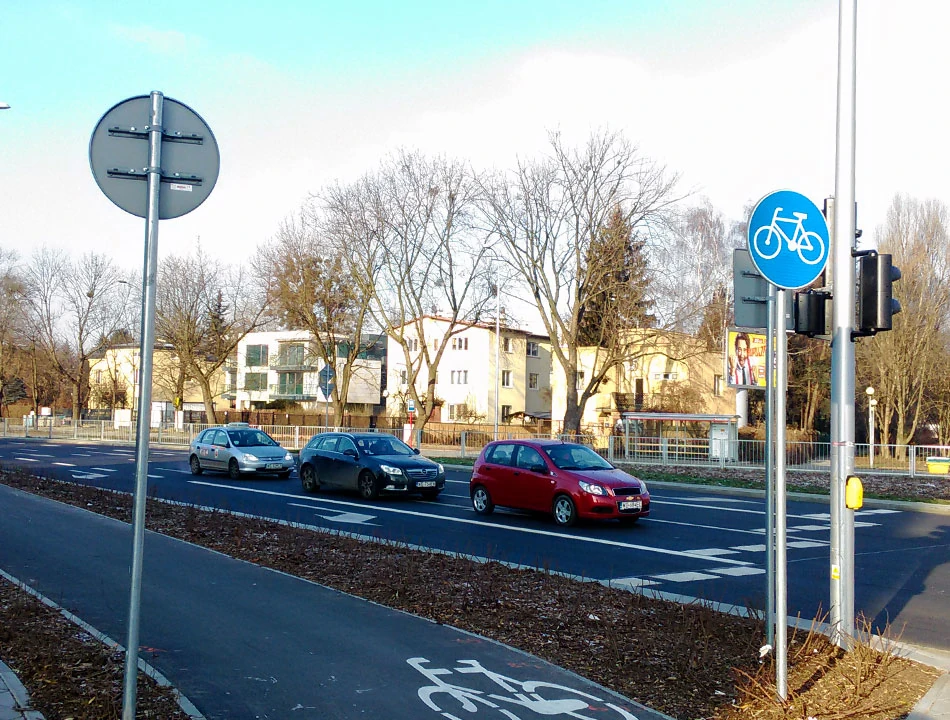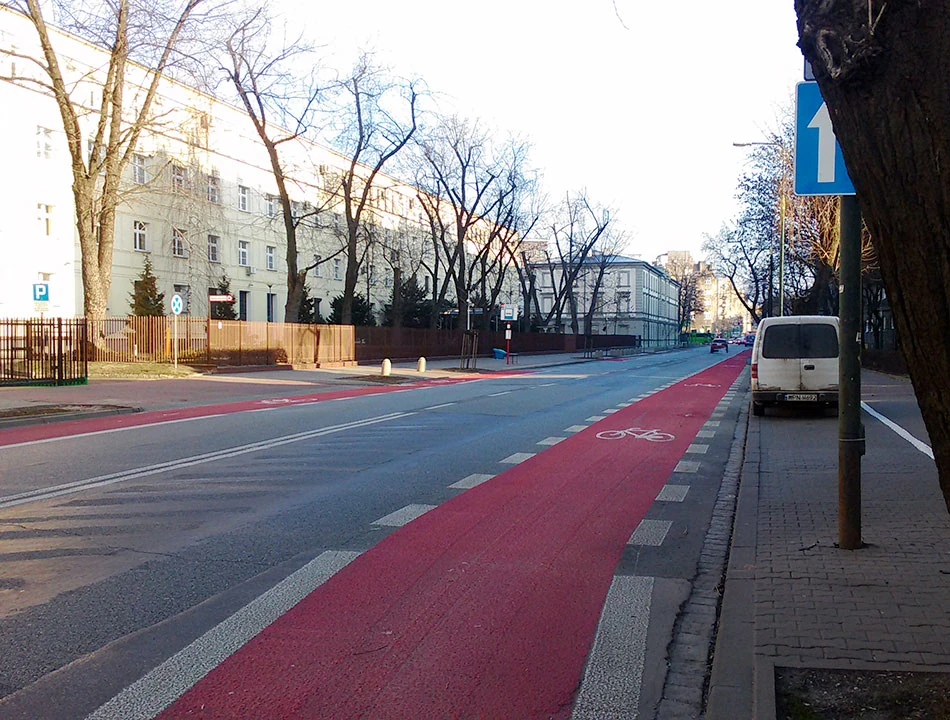 Mołdawską kierujemy się do Racławickiej, a po przecięciu Żwirki i Wigury, dalej jedziemy Racławicką do Wołoskiej. Droga dla rowerów wzdłuż Racławickiej została wytyczona już jakiś czas temu. Jednak ta na Wołoskiej jest nowa tak, jak nowa jest poszerzona Wołoska. Nie wiadomo po co Wołoska ma trzy psy. Droga dla rowerów wzdłuż ulicy jest za to piękna i gładka.