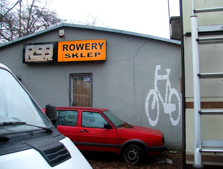 Znajdujemy też akcent rowerowy, ale wygląd tablicy i budynku sugerują, że Towarzystwo raczej nie jest aktywne.