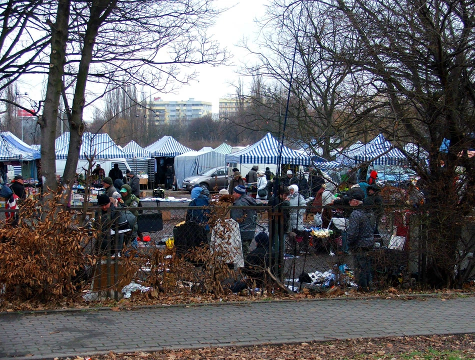 Jedziemy nadal wzdłuż Prymasa, mijając bazar na stadionie Olimpii. Mimo święta ruch duży jak w każdą niedzielę.