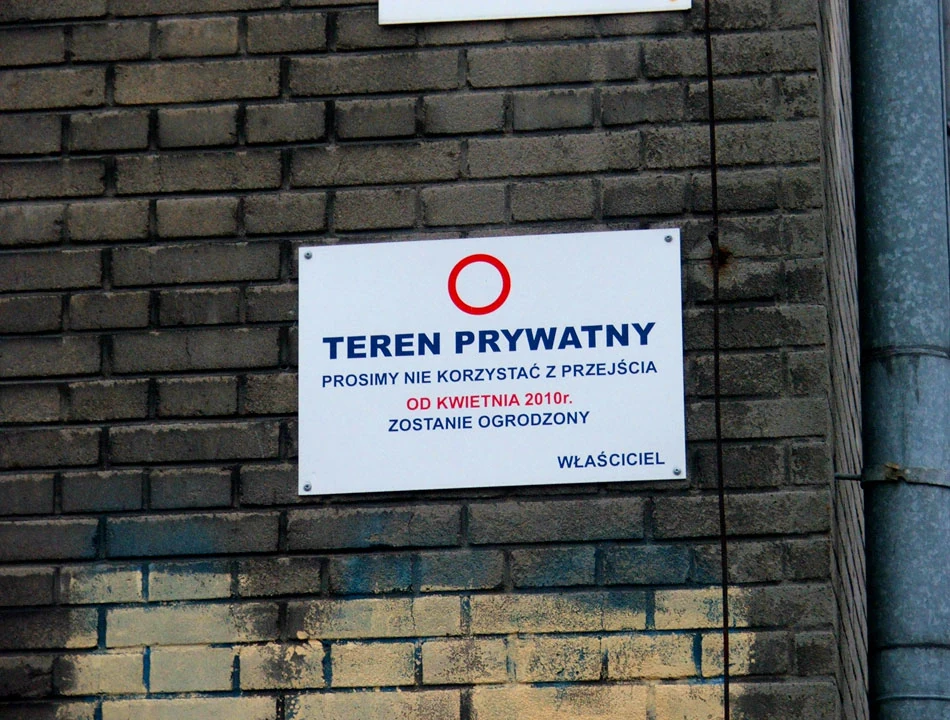 Na budynku będącym siedzibą Warszawskiego Towarzystwa Cyklistów wisi groźna tablica z zakazem przechodzenia. Ale jak widać i ten gospodarz zaniechał jakichkolwiek prac.