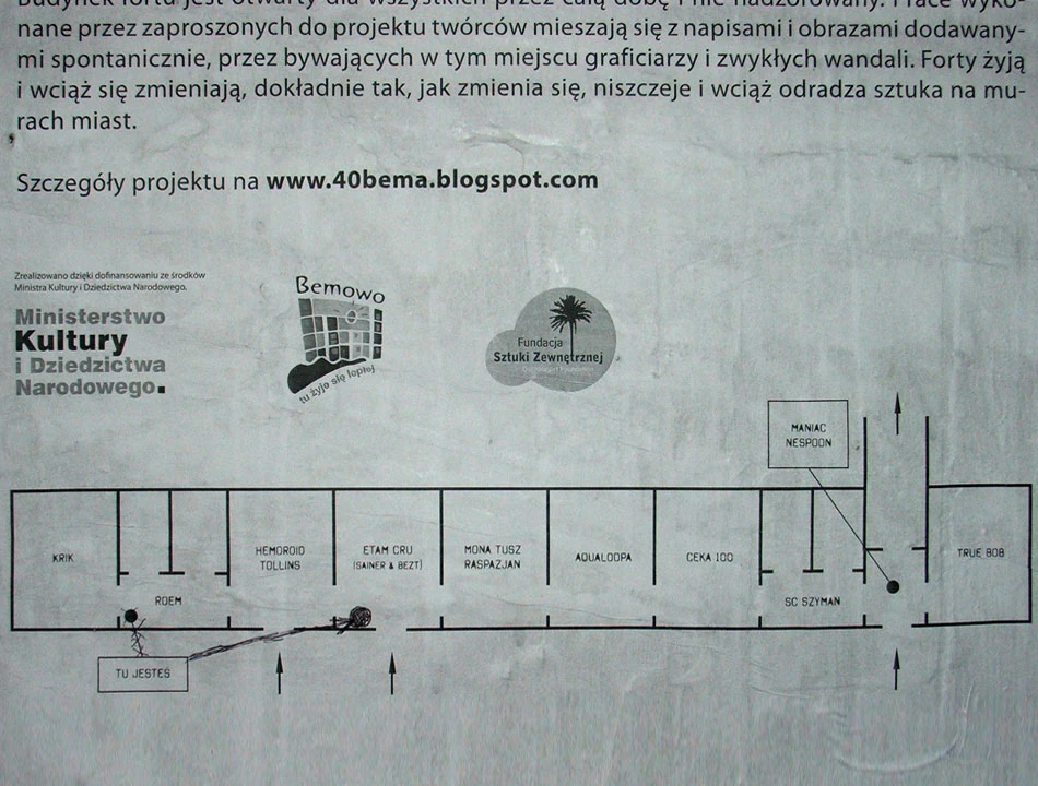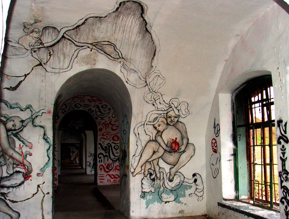 Wnętrze fortu zostało oddane w ręce artystów zajmujących się graffiti. Niektóre prace są genialne. Wszystkie mają wielki rozmach. A sama lokalizacja przywodzi na myśl sztukę więźniów w kazamatach i jednocześnie naskalne malowidła naszych przodków. Galeria jest czynna całą dobę i działa cały rok. A sztuka jest szalenie ulotna, bo narażona na niszczenie jej, czy choćby zmienianie.