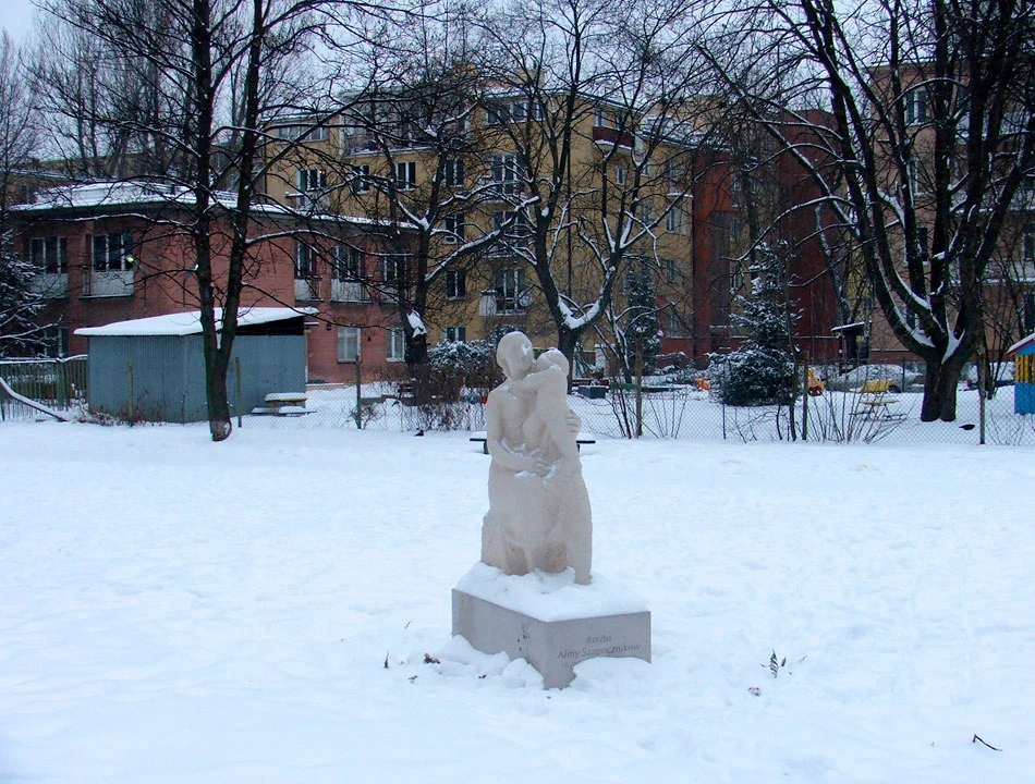 Obok teatru jest Park Żołnierzy „Żywiciela”, a może to teatr jest w parku? Nieco przyprószona śniegiem stoi sobie skromnie rzeźba „Dziewczyny z dzieckiem” Aliny Szapocznikow. Rzeźba całkiem niedawno wróciła odnowiona na swoje miejsce do parku.