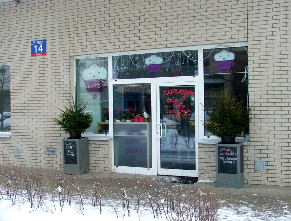 Zostawiamy Sady za sobą; Broniewskiego i Krasińskiego dojeżdżamy do Powązkowskiej. Dalej, między cmentarnymi murami, znanym skrótem z Żoliborza na Koło — Tatarska, Ostroroga — osiągamy Obozową. I już naprawdę jest nam bardzo zimno. A tu wkoło same nowe bloki i mała nadzieja na jakiekolwiek ciepłe miejsce, nie mówiąc już o jakimś posiłku. Ale cuda się zdarzają. Na parterze domu przy ulicy Zawiszy 14 natrafiamy na maleńki lokalik, ni to kawiarnię, ni to restaurację. Ente Cafe to zaledwie trzy stoliki, ale oferta na miarę dużej gastronomii. W weekendy Ente Cafe oferuje śniadania w postaci szwedzkiego stołu, a na nim: naleśniki z różnymi nadzieniami, jajecznica lub jajka sadzone, placki z bananami, sałatka jarzynowa, croissanty, wędlina, ser żółty, twarożek, warzywa, no i kawa. Dowiedzieliśmy się, że nazwa kawiarni pochodzi od czułego pseudonimu jednej ze współwłaścicielek.