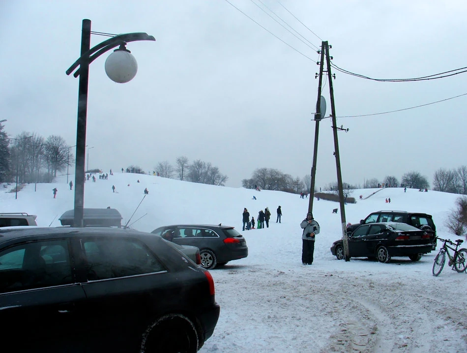 Śmigłowca i Drawską dojeżdżamy do Dickensa. Na górce śmieciowej w Parku Szczęśliwickim tłum oblega wyciąg narciarski.