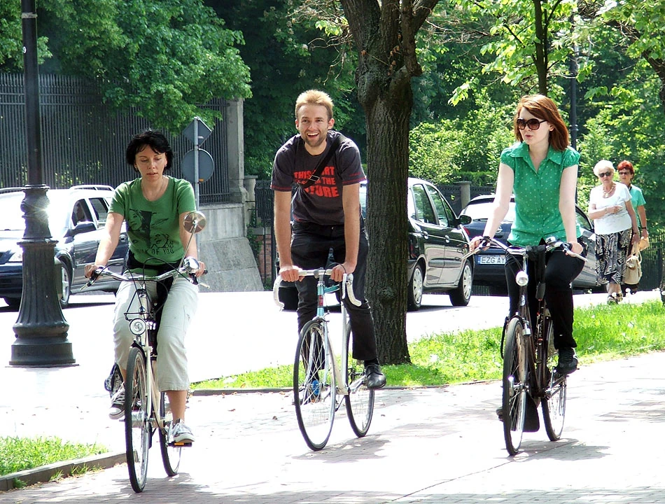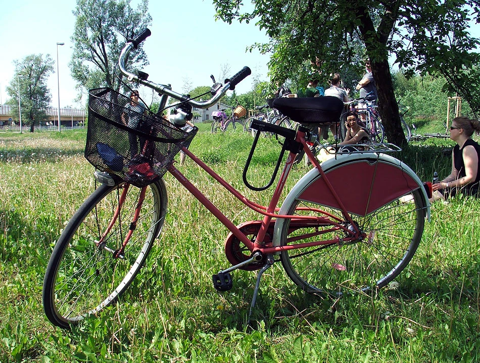 Wzdłuż trasy jedziemy w stronę Wisły i robimy popas przy stawach Siekierkowskich. Jest okazja poprzyglądać się maszynom, na jakich jeżdżą uczestnicy Zmiany. Naszą uwagę przykuł (trochę zmodyfikowany) Romet Mistral, kiedyś marzenie każdego chłopaka, a może też dziewczyny – wielbicielki rowerowych podróży. Ten na oko ma ze trzydzieści lat i do dzisiaj działającą, oryginalną przerzutkę Favorit.